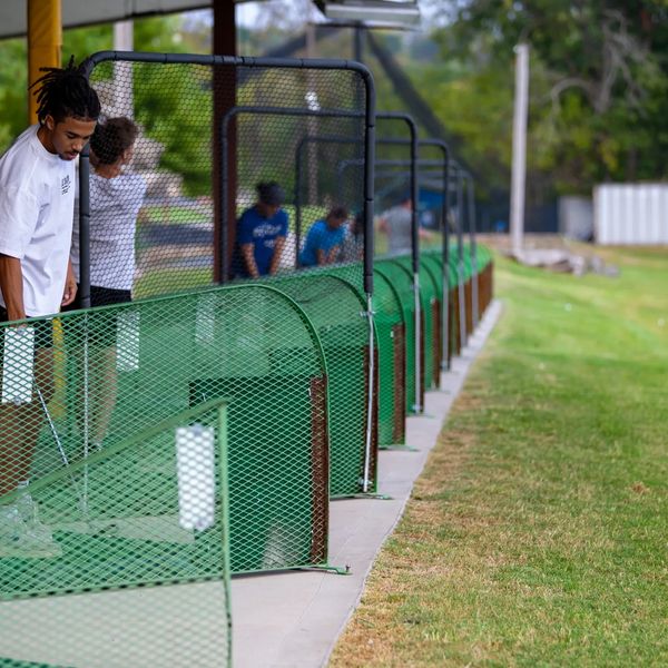 ALTHOUGH THERE ARE 15 TOTAL HITTING BAYS, WE HAVE 7 COVERED TEE MATS, SOME WITH HEATERS AND THEY ARE SOUTH FACING TO COMBAT THOSE COLD WINDS IN THE WINTER MONTHS